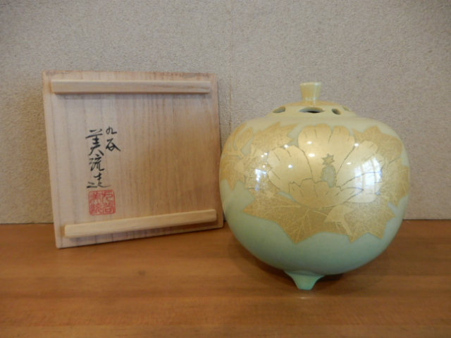岐阜市のお客様より 人間国宝 吉田美統『釉裏金彩芙蓉文 香炉』を買取りさせていただきました
